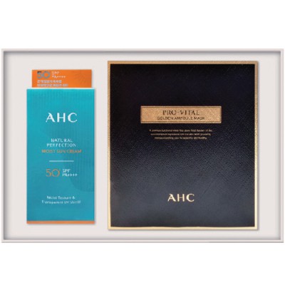 | 기타사항 | • AHC 내추럴 퍼펙션 모이스트 선크림 50ml / SPF50 PA++++ / AHC 프로바이탈골든앰플마스크 (25ml×4장) •입수 : 12개(케이스 포함) ※자수/실크인쇄비용추가 ※부가세/배송비별도 |