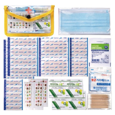 | 기타사항 | 표준밴드8P, 대형밴드2P, 사각밴드2P, 미니밴드5P, 칼라밴드4P, 1회용마스크, 드래싱밴드1P, 멸균거즈2P 1장, 알콜솜4P, 10P면봉 ※밴드이미지는 변경될수있음 |